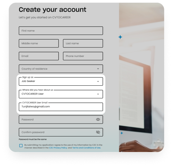 Your earnings are captured when a new user successfully registers on CVtoCAREER as a ‘Job Seeker’ using your Email address during their onboarding.